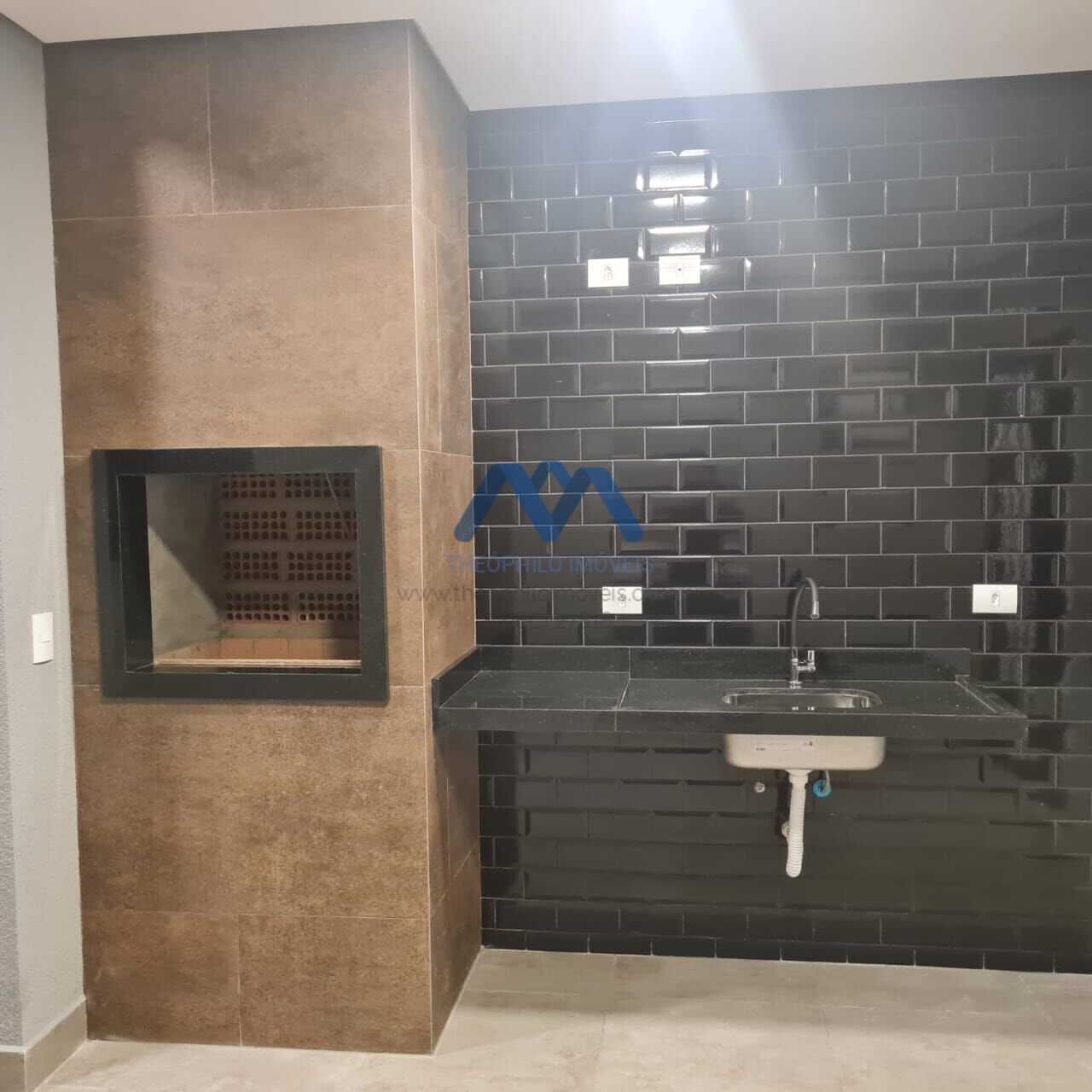 Cozinha integrada com espaço gourmet.