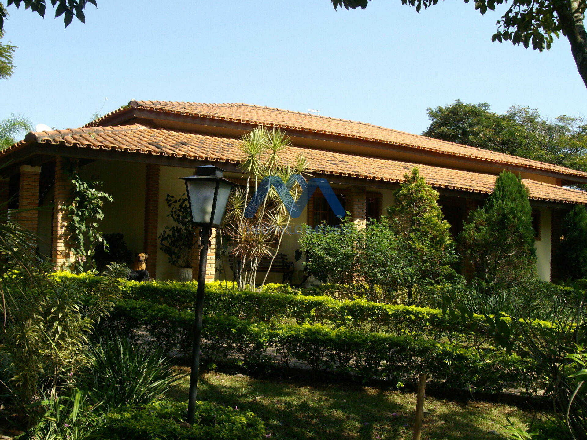 Na área externa, churrasqueira grande, piscina 10x5m com capacidade para 85.000 litros, com filtro, timer e clorador, campo de futebol, garagem coberta para 04 carros, canil para 03 cachorros, pomar com parreira de uva produzindo, mangueiras, jabuticabeira, árvores ornamentais da região, poço caipira, ligado no sistema de alimentação de água para a chácara e casas, portão eletrônico, interfone, sistema de iluminação externa com foto célula, filtro Fusatti no padrão de entrada.