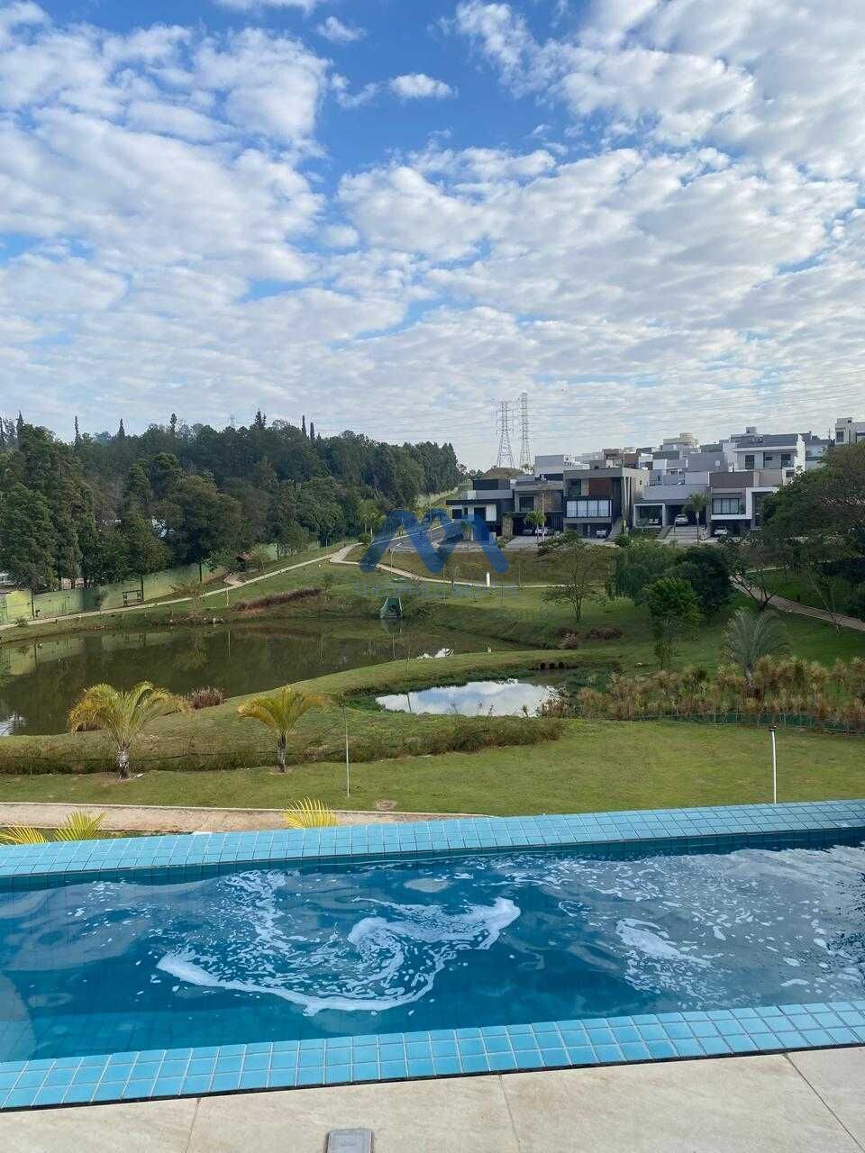O fundo do terreno tem uma linda vista para o lago do condomínio.